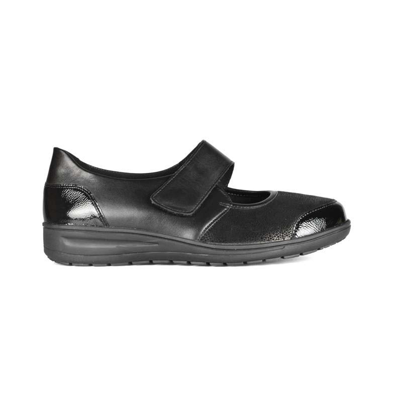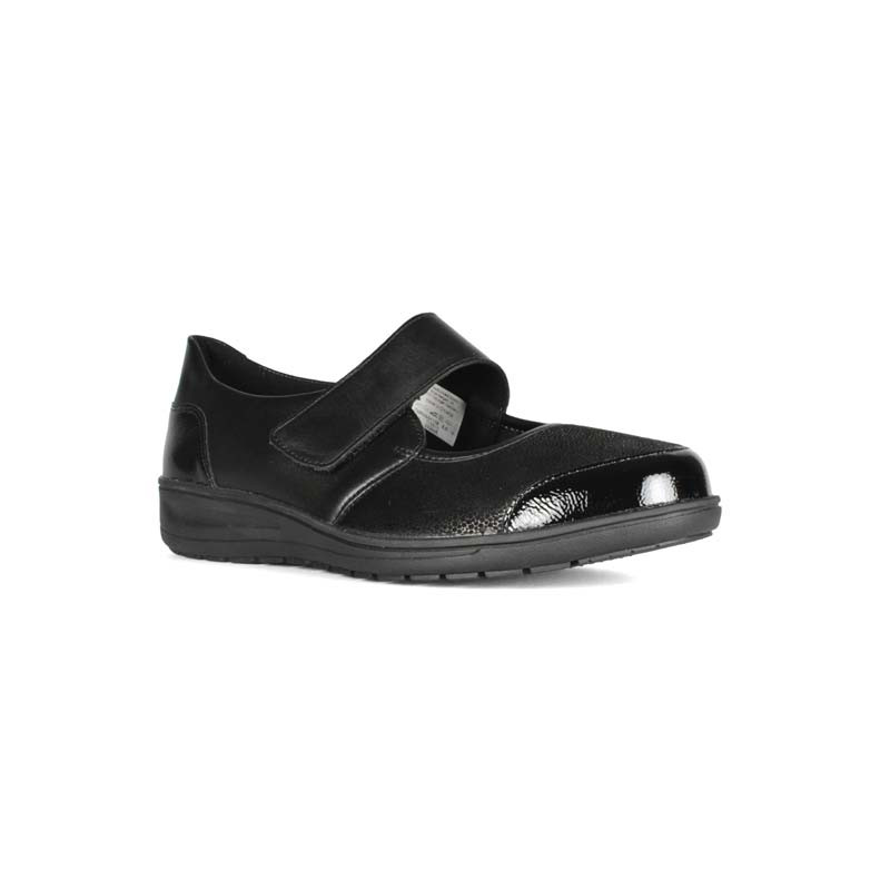 Ballerines à bride velcro de la marque Solidus, particulièrement conseillées pour les personnes souffrant d’hallux valgus. En effet, en plus d'être proposées en cuir et répondant aux exigences recherchées par les personnes souhaitant être chaussées le plus confortablement possible, ces ballerines sont dotées d'une matière en textile extensible, de très grande qualité à l'avant. Ainsi, ce détail très confortable permet à vos orteils déformés d'être bien maintenus sans compression.