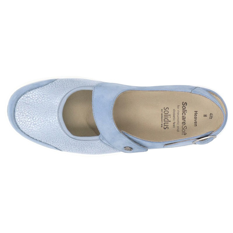 Conseillées pour les pieds déformés, sensibles et larges, les ballerines confort pour femme de la marque SOLIDUS vous chausseront le plus agréablement possible ! En effet, pour que vos orteils douloureux soient toujours bien maintenus et sans compression, ces ballerines Velcro sont confectionnées avec un textile extensible très qualitatif. De plus, afin de pourvoir ajuster le modèle HEAVEN 27500 à chaque pied, vous disposez d'une bride Velcro réglable à l'avant et d'une bride boucle à l'arrière.
