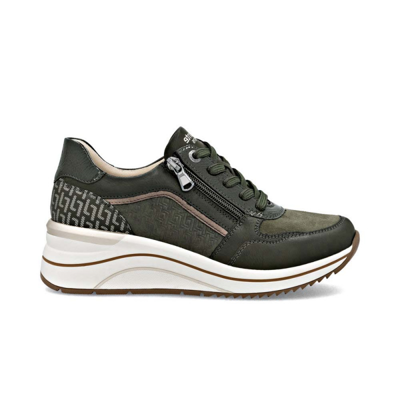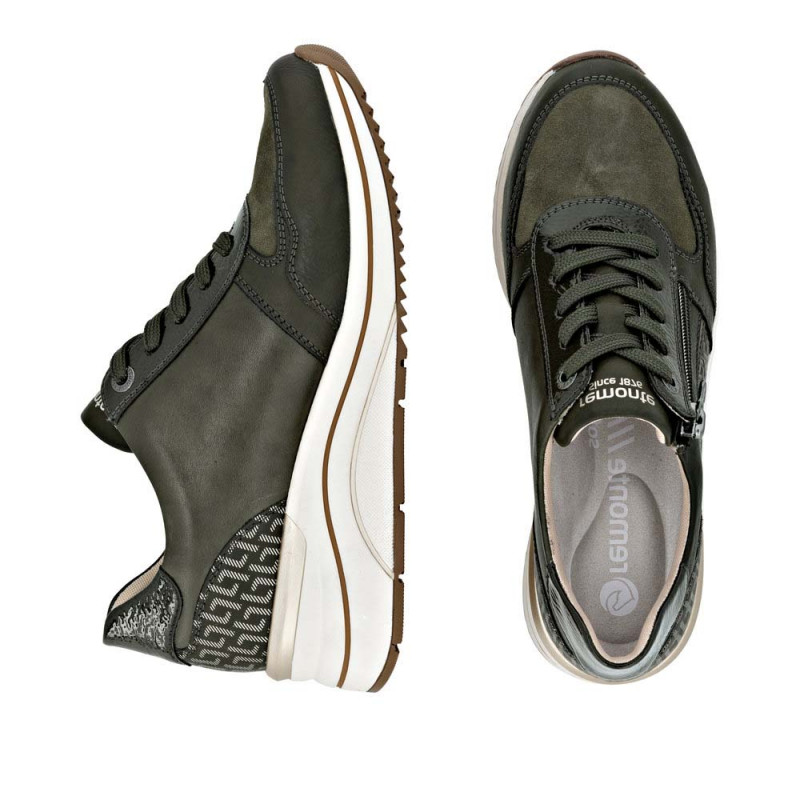 On adore le style et le confort au porté des baskets D0T16 à talon compensé pour femme de la marque REMONTE ! Ces baskets modernes pour femme se ferment facilement par un zip sur le coté.