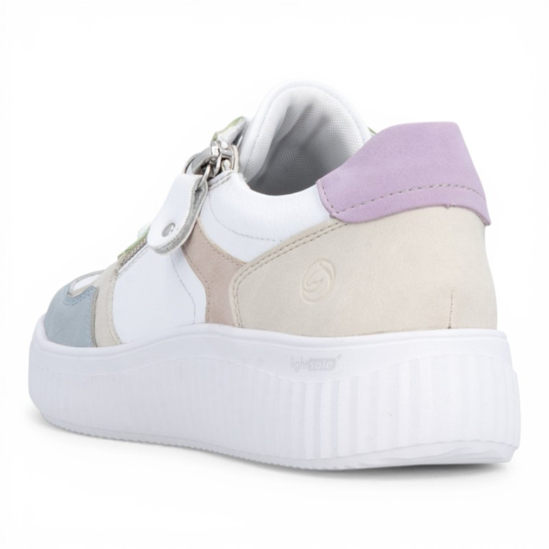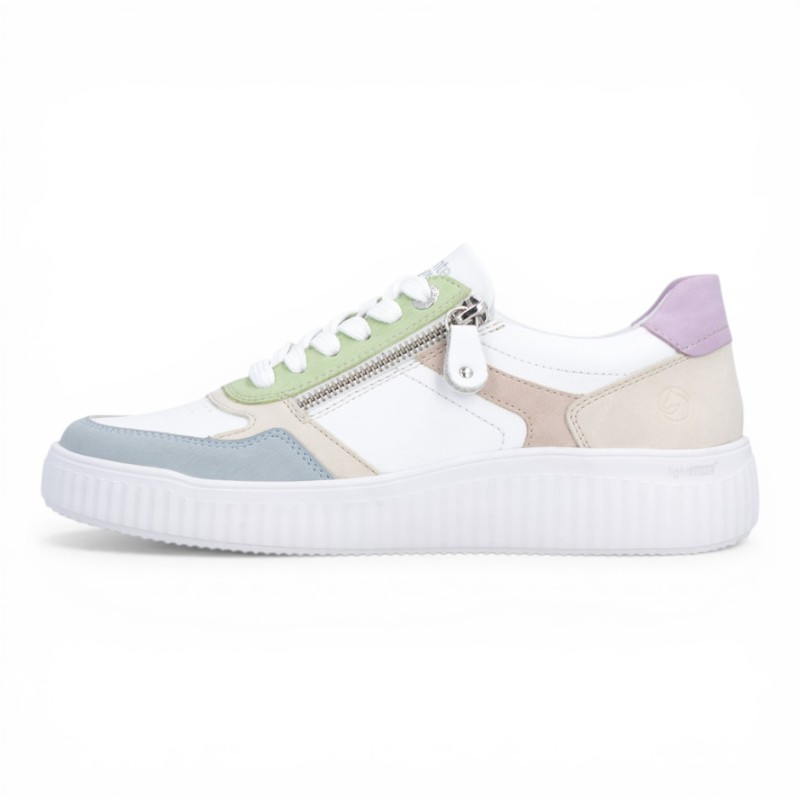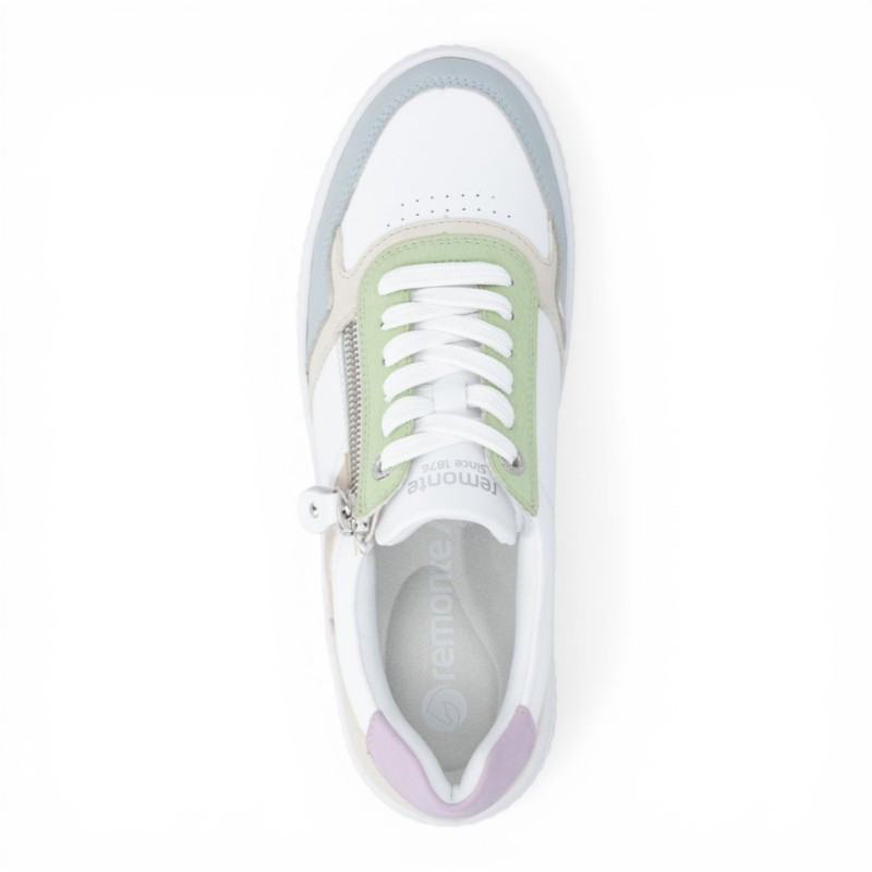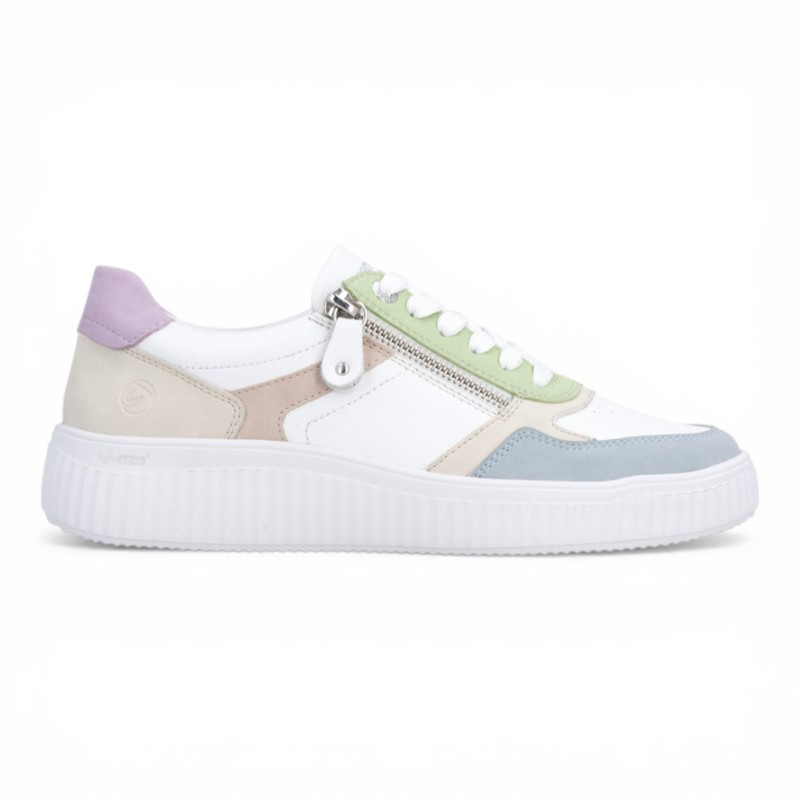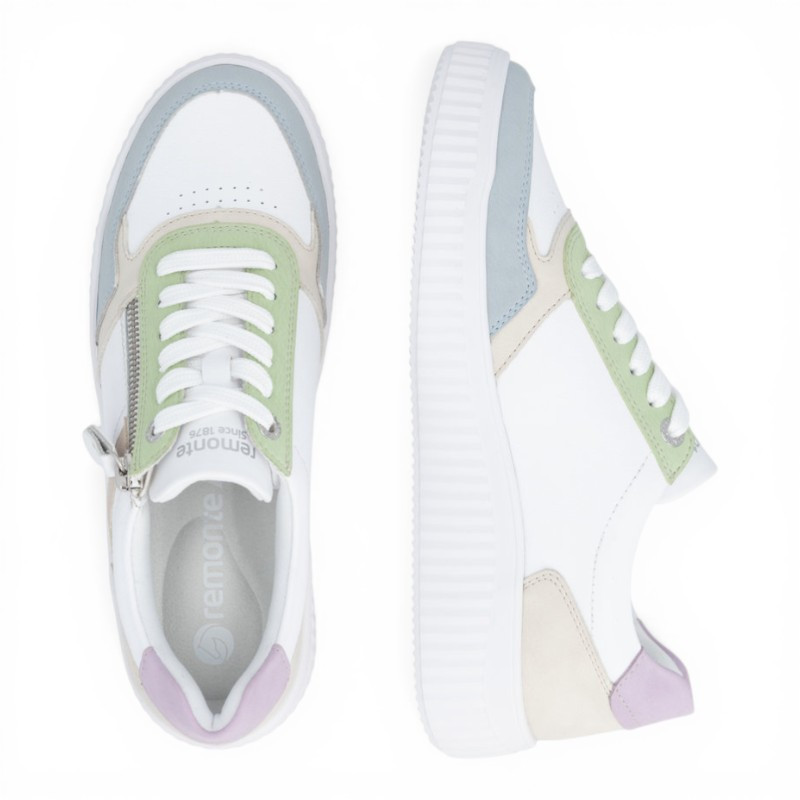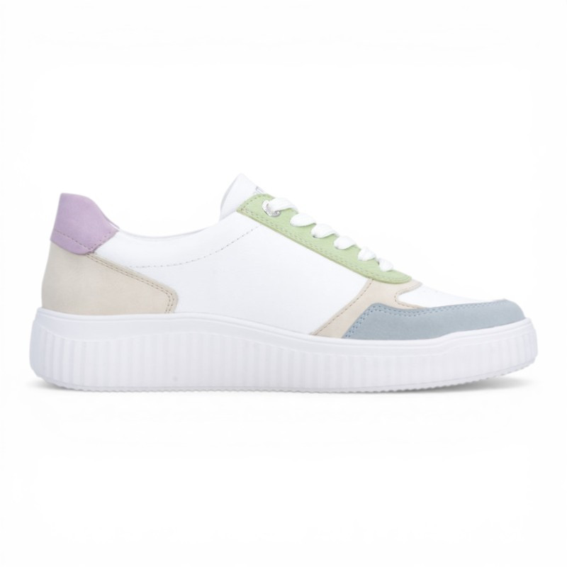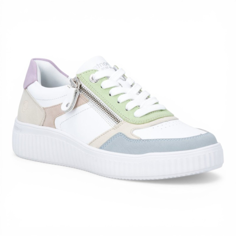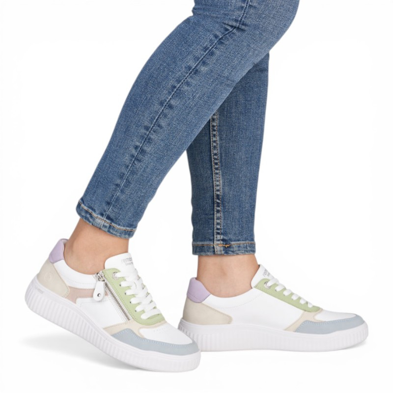 On est fan des baskets basses pour femme D3E05 de la marque REMONTE qui offrent un style très actuel et un confort de marche optimal. Elle se démarque par un design moderne et frais, combinant plusieurs couleurs pastel pour un rendu doux et tendance. Ce mélange harmonieux apporte du dynamisme tout en restant facile à assortir.