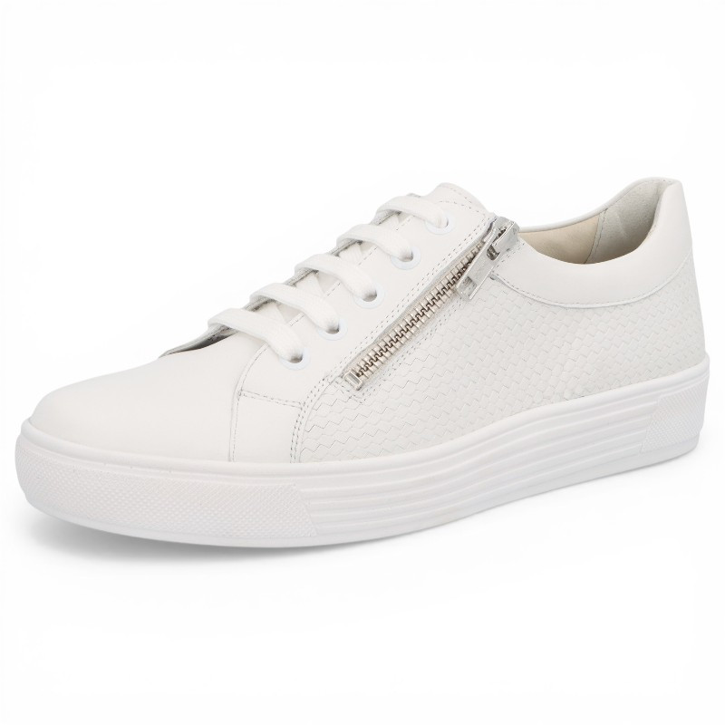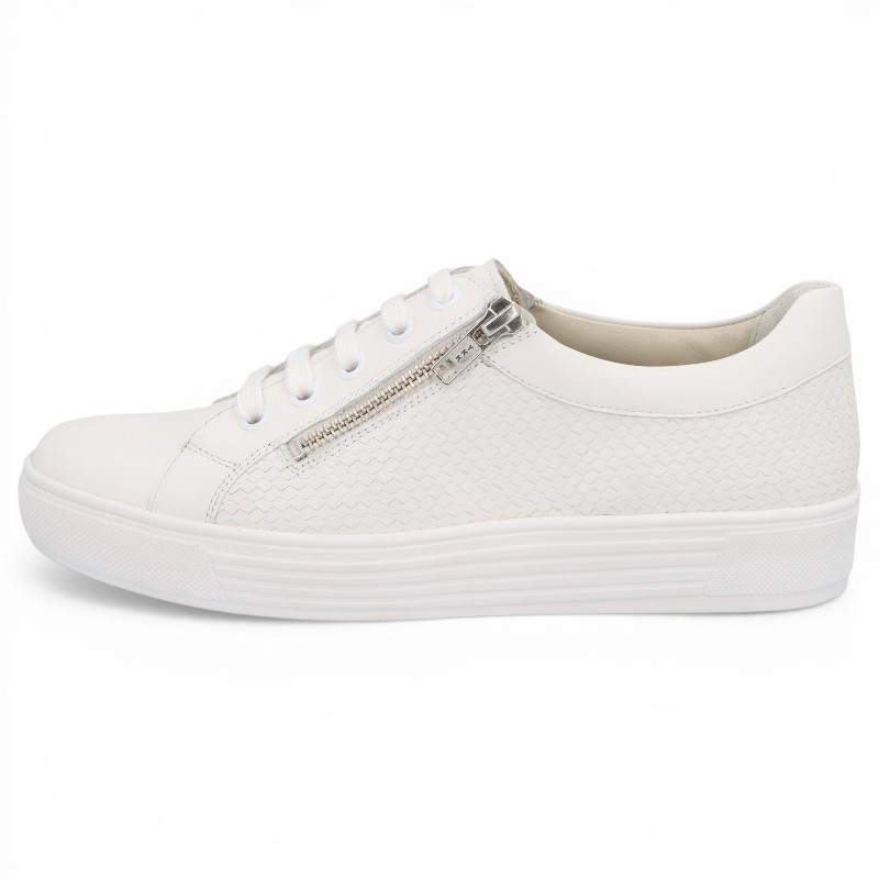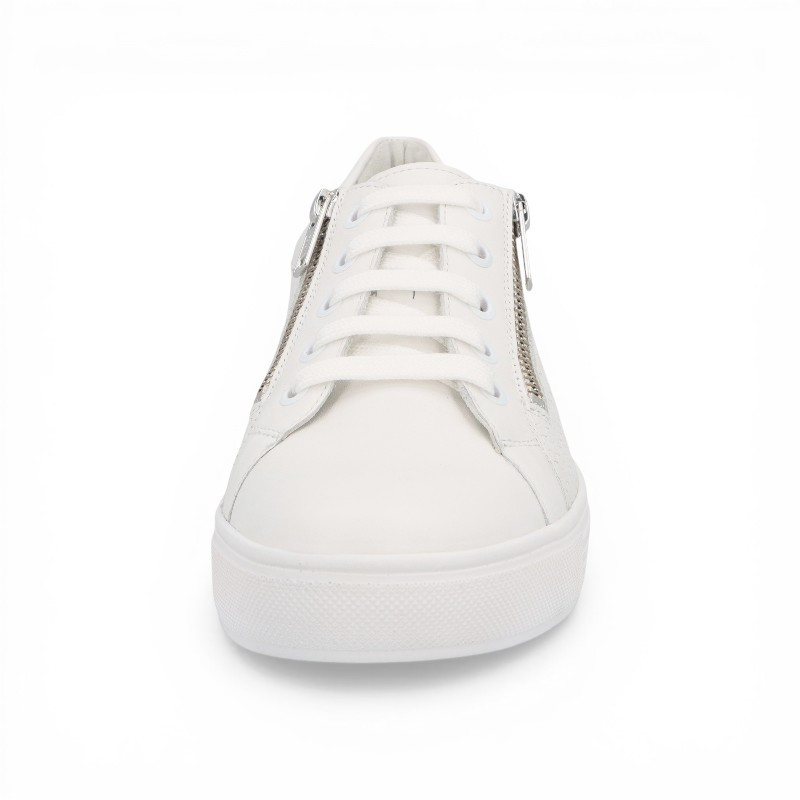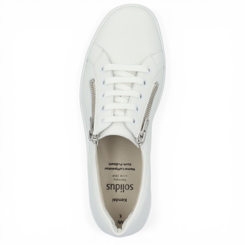 Au top de la mode, les baskets blanches pour femme de la marque SOLIDUS seront vous parfaite alliée ! Faciles à assortir à vos tenues, ces baskets basses sont avant tout idéales pour les pieds larges ! Très agréables à porter, elles sont aussi très faciles à chausser au quotidien avec double zip de fermeture sur les côtés !
