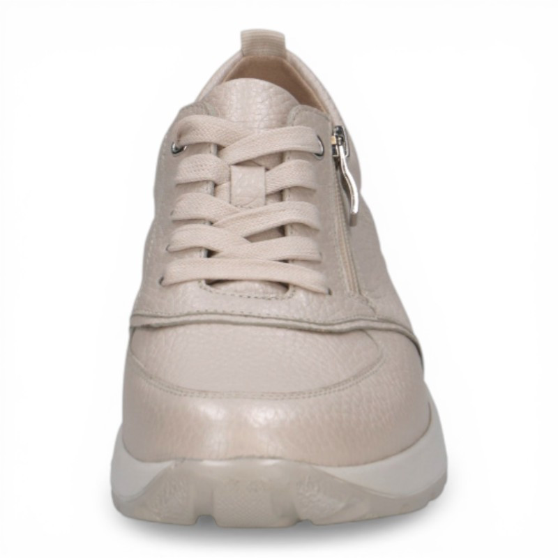 Ces baskets basses 23765 très agréables à porter sont confectionnées en cuir lisse très souple et sont conseillées pour les pieds très larges. Vous apprécierez rapidement leur facilité à vous chausser car elles disposent d'un long zip coté extérieur pour l'insertion du pied. Et, comme ces baskets femme sont munies de semelles amovibles, elles sont conseillées pour celles qui portent des semelles orthopédiques.