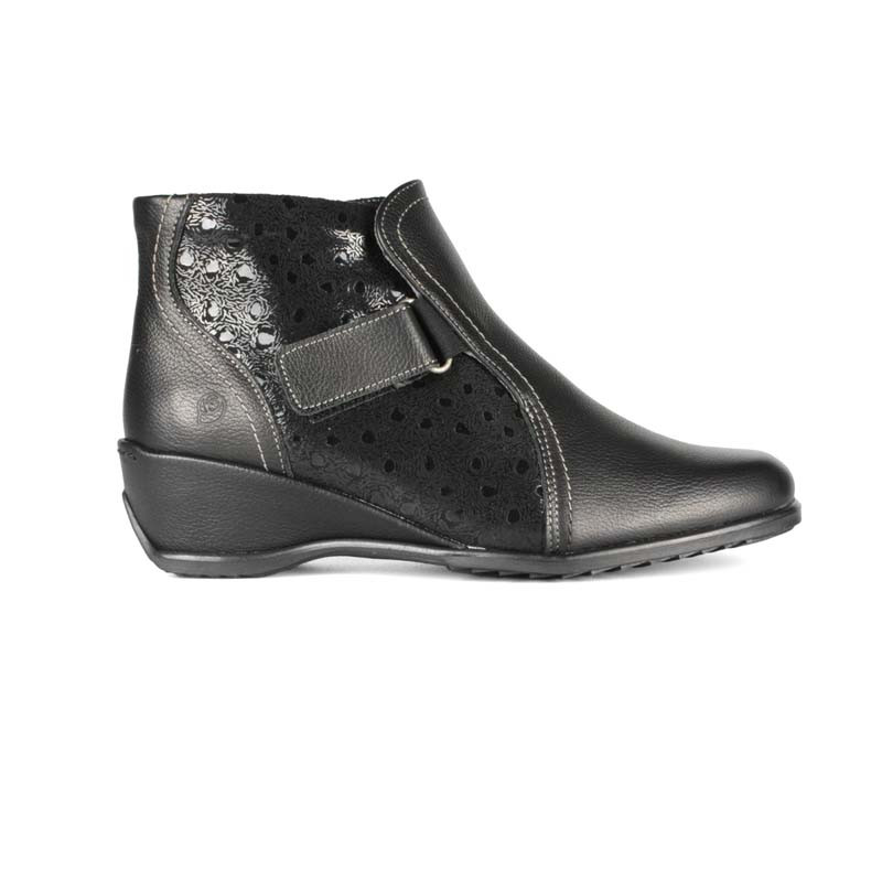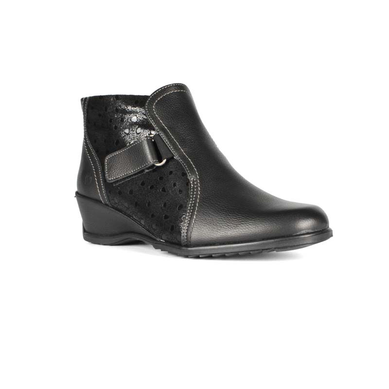 Nos pieds nous supportent toute la journée, aussi il est nécessaire de les préserver en choisissant de bonnes chaussures. Voilà pourquoi la marque confort Suave, nous propose cette charmante bottine en cuir qui remplira pleinement sa mission ! Très souple, elle est munie d'une semelle interne amovible et d'un amortisseur de chocs dans le talon pour un confort de marche idéal. Deux pattes velcro élastiquées permettront une insertion facile et un ajustement de la largeur au niveau du cou-de-pied. Souple et confortable, un modèle idéal au quotidien.
