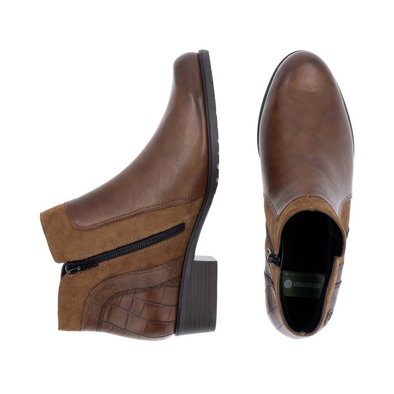 Les boots zip pour femme de la marque REMONTE vous raviront par leur style très féminin et par le confort que vous ressentirez en les chaussant. D'une grande souplesse, ces boots zip se portent sans concession au quotidien et sont proposés en cuir lisse très souple. Faciles à enfiler grâce à leur zip coté intérieur, ils sont montés sur un petit talon très stable de 3,5 cm.