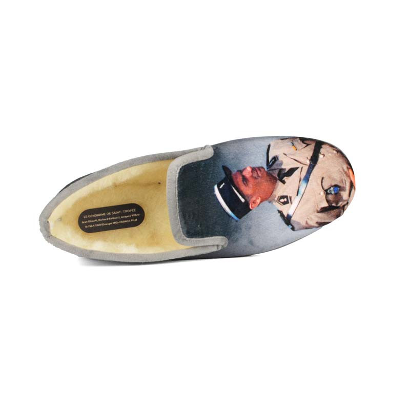 Idéales à offrir à Noël, les charentaises humoristiques pour homme de La Maison de l'Espadrille sont imprimées dans le thème de "Les Gendarmes à St Tropez" ! Entièrement doublées de laine de mouton, ces charentaises pour homme sont très confortables et maintiennent vos pieds bien au chaud tout en les laissant respirer : pas de problème de sudation ! Vous ne pourrez que tomber sous le charme de ces charentaises humoristiques pour homme, un modèle à la fois plein d'humour et très qualitatif.