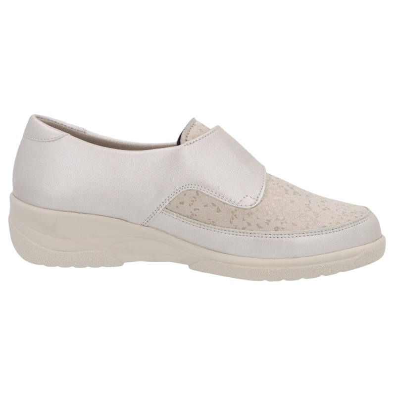 Chaussures idéales pour les pieds gonflés sur le cou-de-pied. Le plateau supérieur façonné en cuir, est très flexible de façon à soulager les pieds sensibles. La semelle extérieure est montée sur un système de coussins d’air procurant un amorti remarquable. La doublure bénéficie du traitement SolicareSoft qui apporte un maximum de confort aux pieds douloureux. Et la fermeture velcro permet une large ouverture au moment de l’emboitement et autorise un ajustement sur-mesure. Le modèle Hedda de Solidus réunit confort et élégance à la perfection.