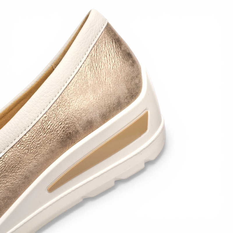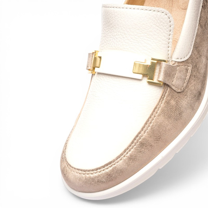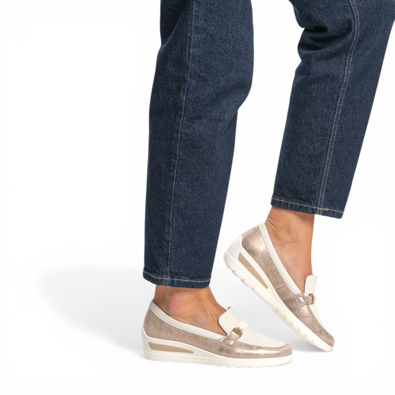 Très confortables à porter, les mocassins sans gêne pour femme de la marque ARA sont conçues avec des matières de grande qualité. Dotés d’une semelle compensée légère, ces mocassins offrent un excellent confort de marche. Le détail métallique doré sur le dessus ajoute une touche sophistiquée, parfaite pour sublimer vos tenues, du casual au plus habillé. Vous apprécierez le confort optimal apporté par la semelle intérieure amovible avec voûte plantaire et par la semelle d'usure en caoutchouc antidérapant.