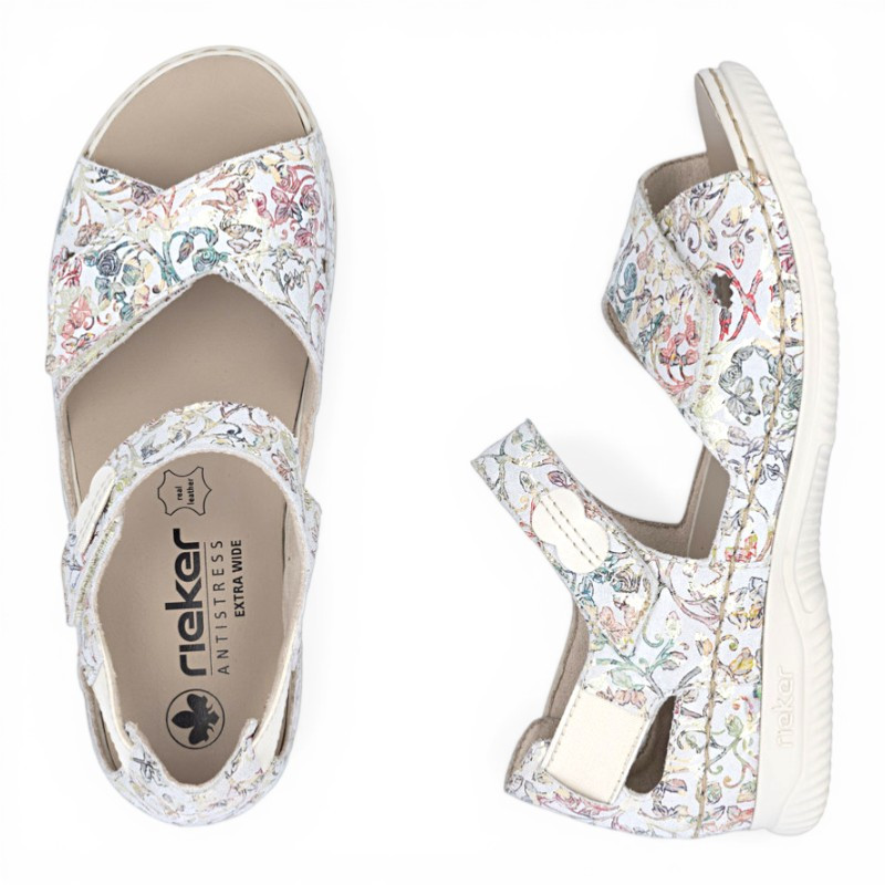 Faciles à chausser et offrant une ouverture totale, les sandales à brides Velcro de la marque RIEKER vous chausseront très confortablement. Ces sandales féminines disposent de 2 brides Velcro. La semelle, légèrement épaisse et antidérapante, offre un bon amorti ainsi qu’une adhérence confortable pour un usage quotidien.