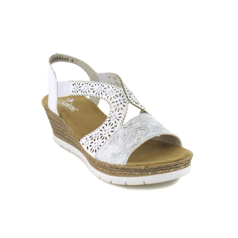 Très agréables à porter, les sandales à talon compensé de la marque RIEKER se chaussent très facilement grâce à leurs élastiques d'aisance sur les cotés et sur le cou-de-pied. De plus, vos pieds seront toujours bien maintenus pendant la marche. Vous aimerez leur style très féminité accentué par les ornements en petits strass. Ces sandales pour femme reposent sur un talon compensé très agréable et très stable.