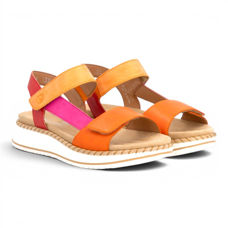 Mettez de la couleur à vos pieds avec les sandales femme D3J50 de la marque REMONTE vous chausseront très confortablement au quotidien. Confectionnées en cuir lisse très souple et disposant de deux velcros, elles sont parfaites pour celles qui recherchent du confort et de l'aisance au quotidien. De plus, vous apprécierez les très confortables semelles amovibles et anatomiques !